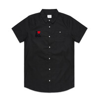 Short sleeve button up shirt, button close chest pocket, clear buttons